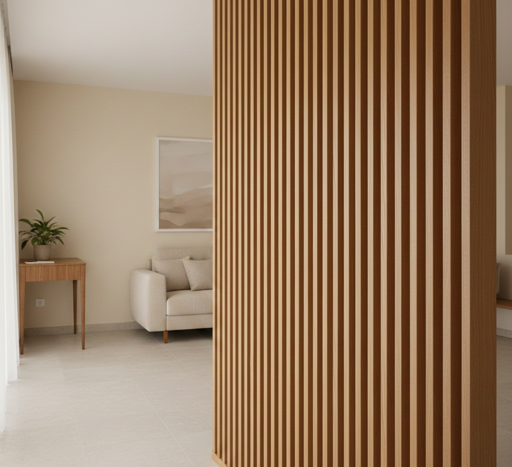 Il successo del legno grigliato nasce dalla sua versatilità e dal suo impatto visivo equilibrato. È una soluzione che comunica modernità senza risultare fredda, grazie alla matericità del legno naturale.